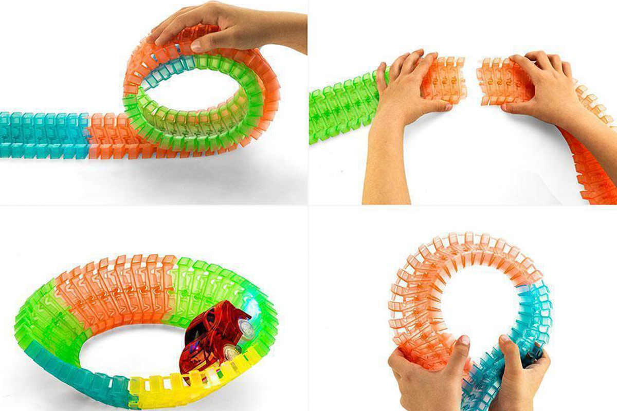 Magic Track - это гибкая гоночная трасса, которая развивает творческие способности и отрывает от гаджетов. Специальная машинка подсвечивает дорогу и освещает ее в разные цвета, что дарит возможность проводить игры в темноте, для еще большей эффектности!