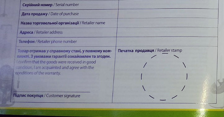 К каждому изделию Вы получаете гарантийную книжку с мокрой печатью! Каждая единица имеет свой серийный номер который дублируется в гарантийном талоне!