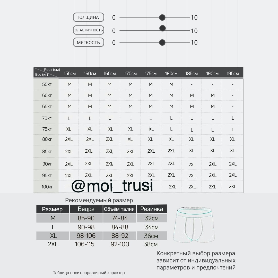 Заказывал трусы размера L. Мне в самый раз. Трусы все качественные, нитки нигде не торчат, очень стильные. Классно, что много разных цветов — не надоедает. Я вообще в полном восторге, еще и за такую цену.