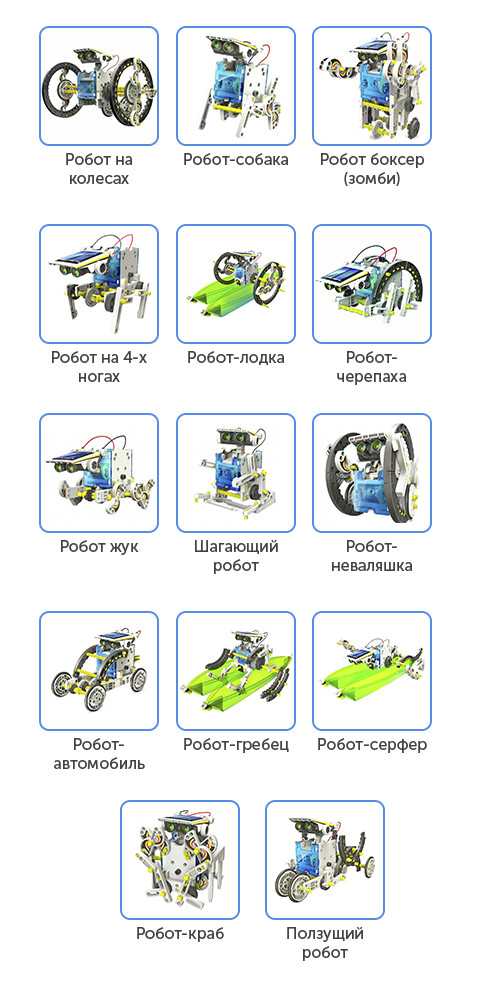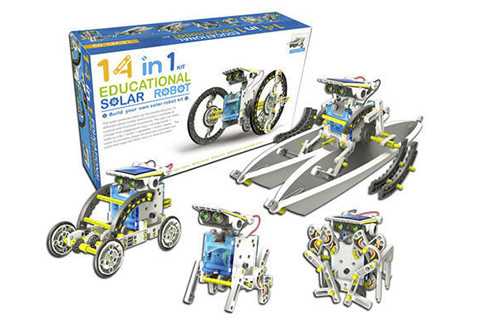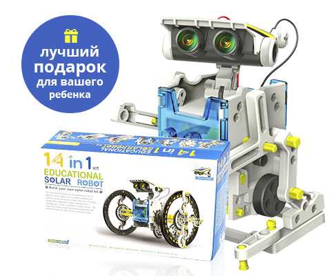Робот 14 в 1 – конструктор с возможностью сборки 14 моделей, которые приводятся в движение двигателями, питающимися от солнечных панелей.